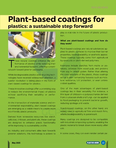 hese natural coatings enhance the per- by-products or plant-derived polymers.