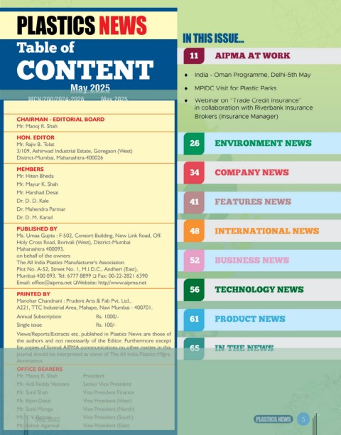 journal should be interpreted as views of The All India Plastics Mfgrs.