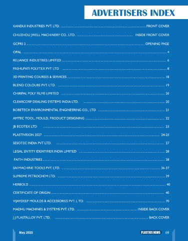 VIJAYDEEP MOULDS & ACCESSORIES PVT. L TD. ............................................................................................ 70