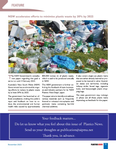 he NSW Government's consulta- 800,000 tonnes (t) of plastic waste, It also covers single-use plastic items