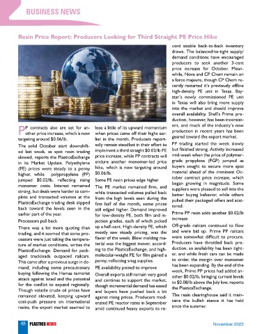 jumped $0.02/lb, reflecting rising Some PE resin prices edge higher tober contract price increase, which