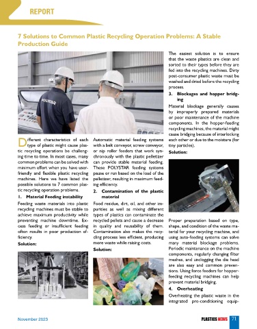 preventing machine downtime. Ex- recycled pellets and cause a decrease Proper preparation based on type,