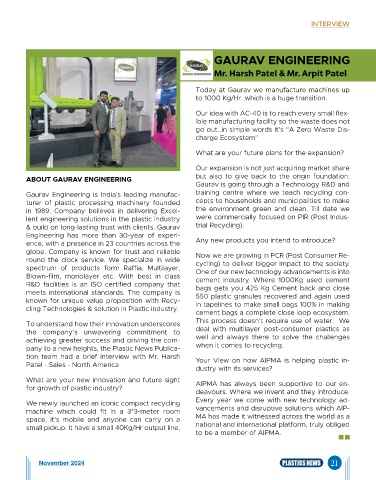 tion team had a brief interview with Mr. Harsh Your View on how AIPMA is helping plastic in-