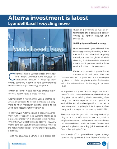 Finnish oil refiner Neste also was among the in- In September, LyondellBasell began construc-