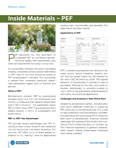 PEF provides several advantages over PET, in- mercial FDCA production plant on October 22.