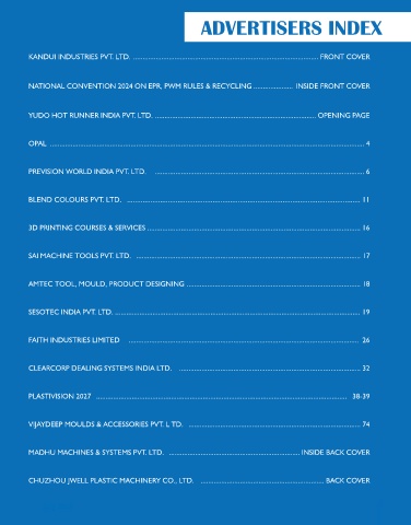 VIJAYDEEP MOULDS & ACCESSORIES PVT. L TD. ............................................................................................ 74