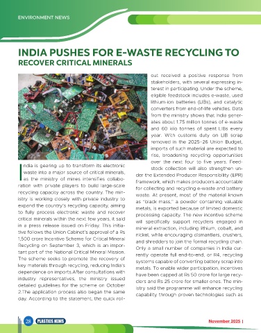 key materials through recycling, reducing India’s metals. To enable wider participation, incentives