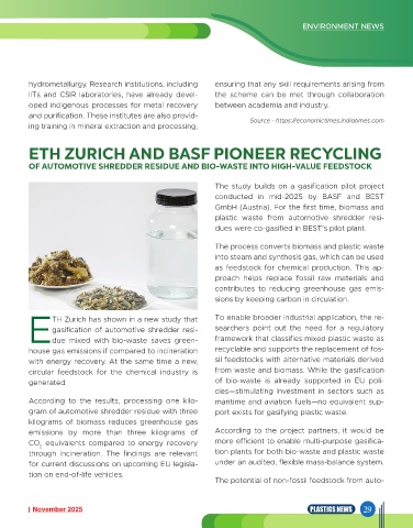 ETH ZURICH AND BASF PIONEER RECYCLING