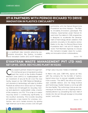 na, Odisha and Chhattisgarh for recycling medi- the new facility. The technology that we are har-