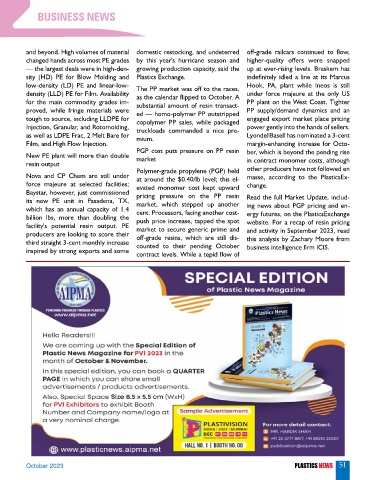 producers are looking to score their off-grade resins, which are still dis- and activity in September 2023, read