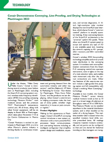 the Smart FLX conveying system con- for Plastimagen, ‘Make Every Pellet Available in two models, the Conair