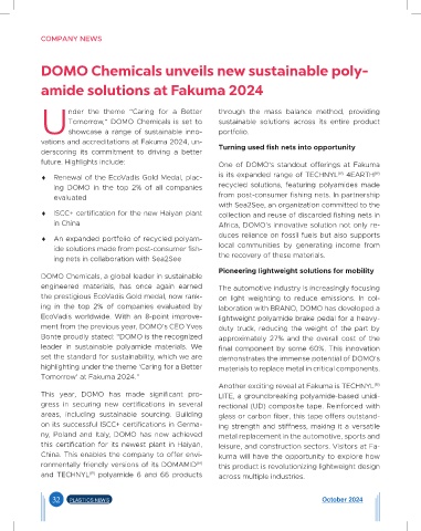 ing DOMO in the top 2% of all companies recycled solutions, featuring polyamides made