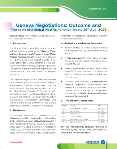 (AIPMA) hosted a webinar on “Geneva Nego- the progress of INC up to the Busan meeting