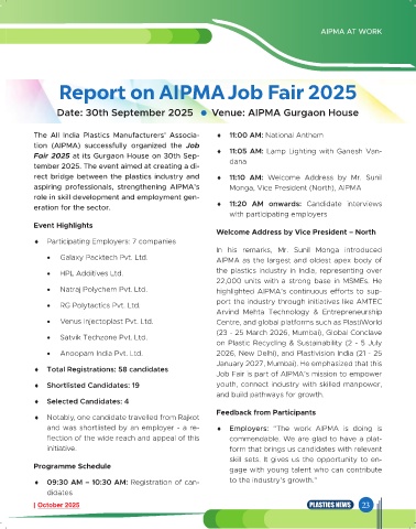 • Natraj Polychem Pvt. Ltd. highlighted AIPMA’s continuous efforts to sup-