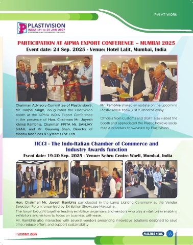 Chairman Advisory Committee of Plastivision, Mr. Rambhia shared an update on the upcoming