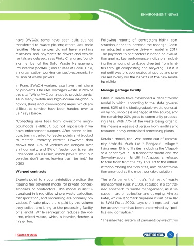 to material recovery centres. However, data Kerala’s model, too, was borne out of commu-