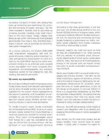 sanitary, and special care waste. Barde says Kerala’s HKS is a sound model of en-