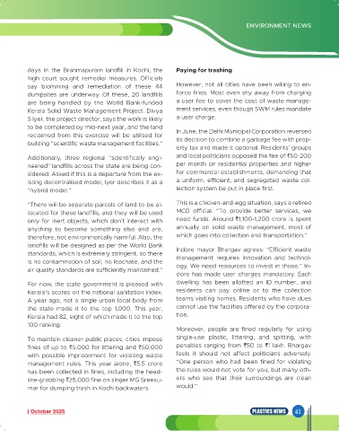 days in the Brahmapuram landfill in Kochi, the Paying for trashing