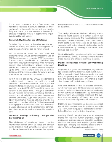 tric tie-bar-less machines addresses this by ena- Source – Plastics News