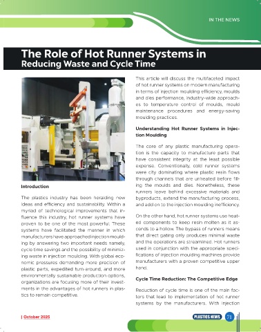 ments in the advantages of hot runners in plas- Reduction of cycle time is one of the main fac-
