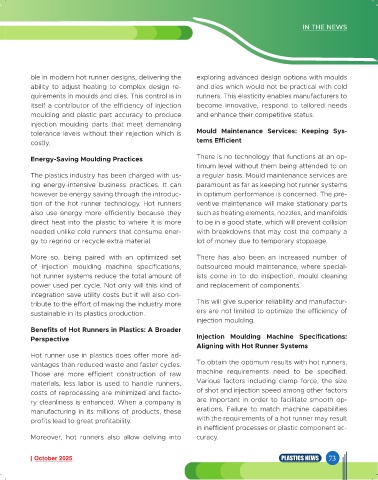 vantages than reduced waste and faster cycles. To obtain the optimum results with hot runners,