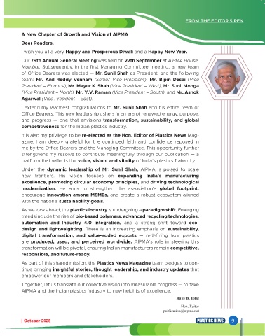 It is also my privilege to be re-elected as the Hon. Editor of Plastics News Mag-