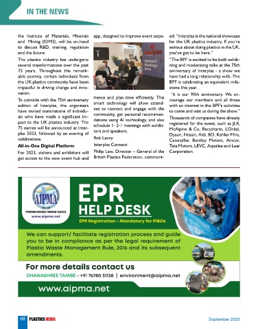 the Institute of Materials, Minerals app, designed to improve event expe- ed: “Interplas is the national showcase