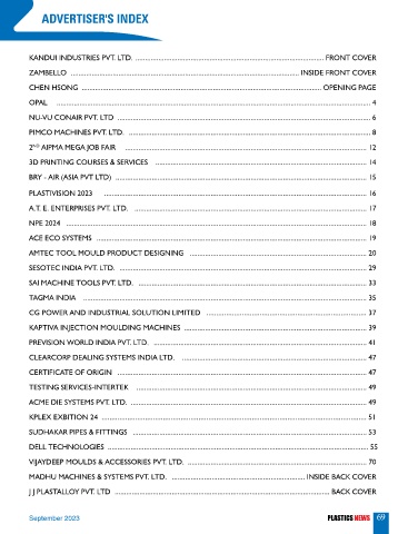 VIJAYDEEP MOULDS & ACCESSORIES PVT. LTD. .............................................................................................. 70