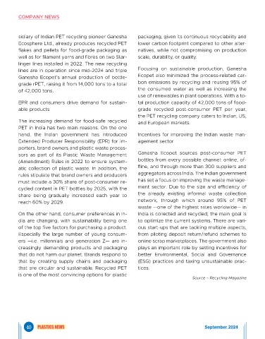 sors as part of its Plastic Waste Management Ganesha Ecopet sources post-consumer PET
