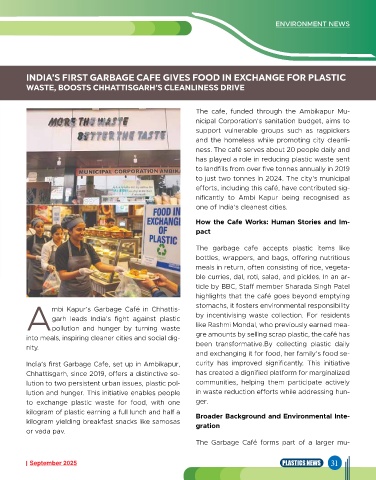 India’s first Garbage Cafe, set up in Ambikapur, curity has improved significantly. This initiative